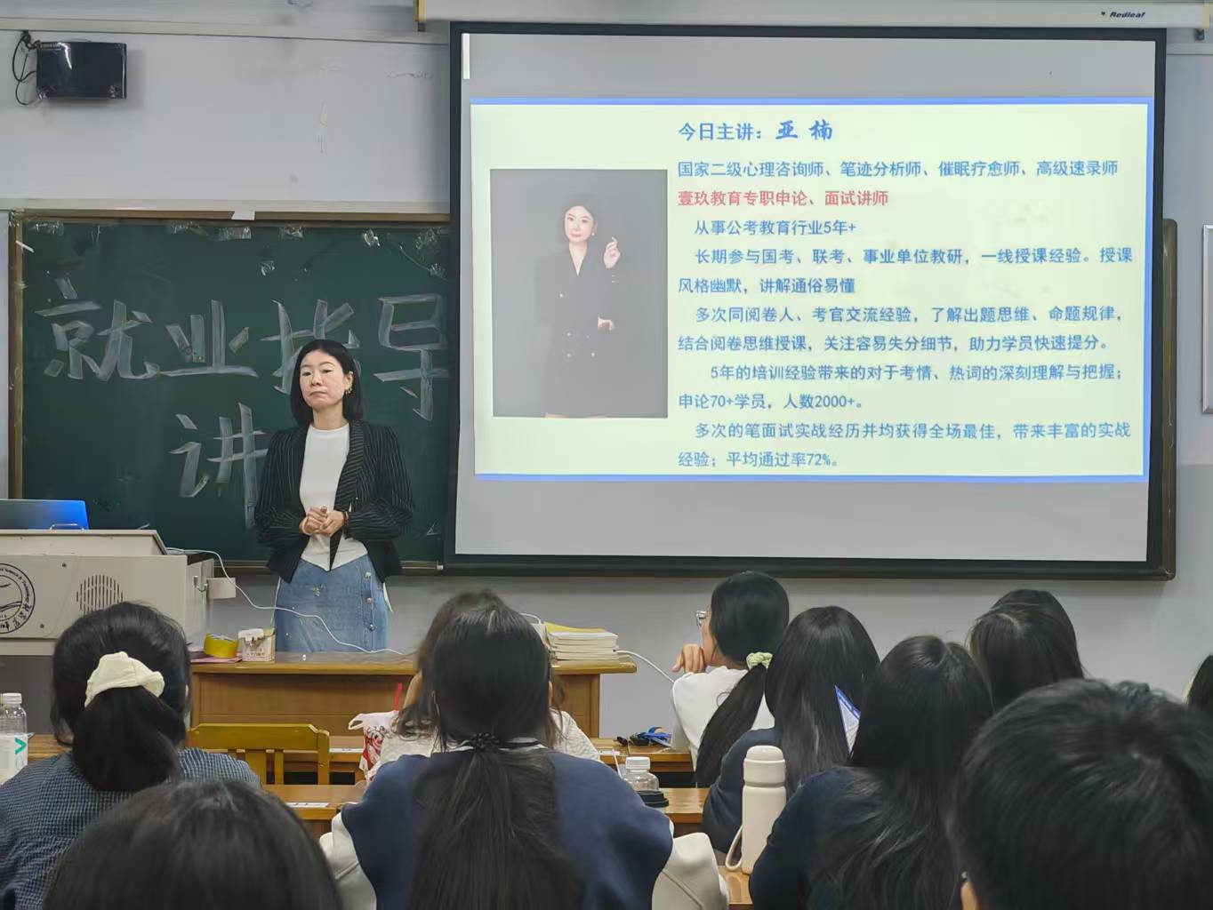 为助力学子精准把握就业趋向,清晰认知毕业生规模激增带来的就业挑战,系统理解事业编与考公核心内涵,提升就业选择科学性与求职竞争力,我校于2025年9月16日在综合楼506教室举办就业指导讲座。本次讲座覆盖全校各院系学生,吸引众多同学到场,现场互动踊跃,圆满达成预期目标。